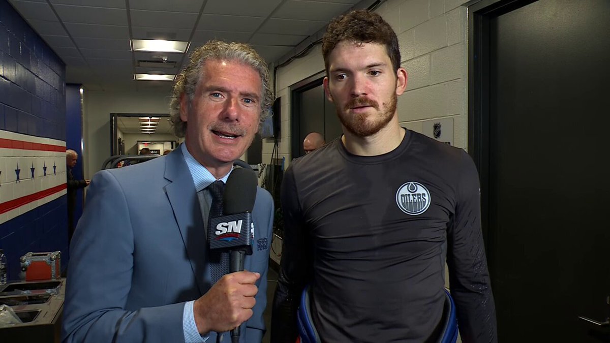 Jack Roslovic chats with @GenePrincipe after scoring his second straight OT winner for the @EdmontonOilers
